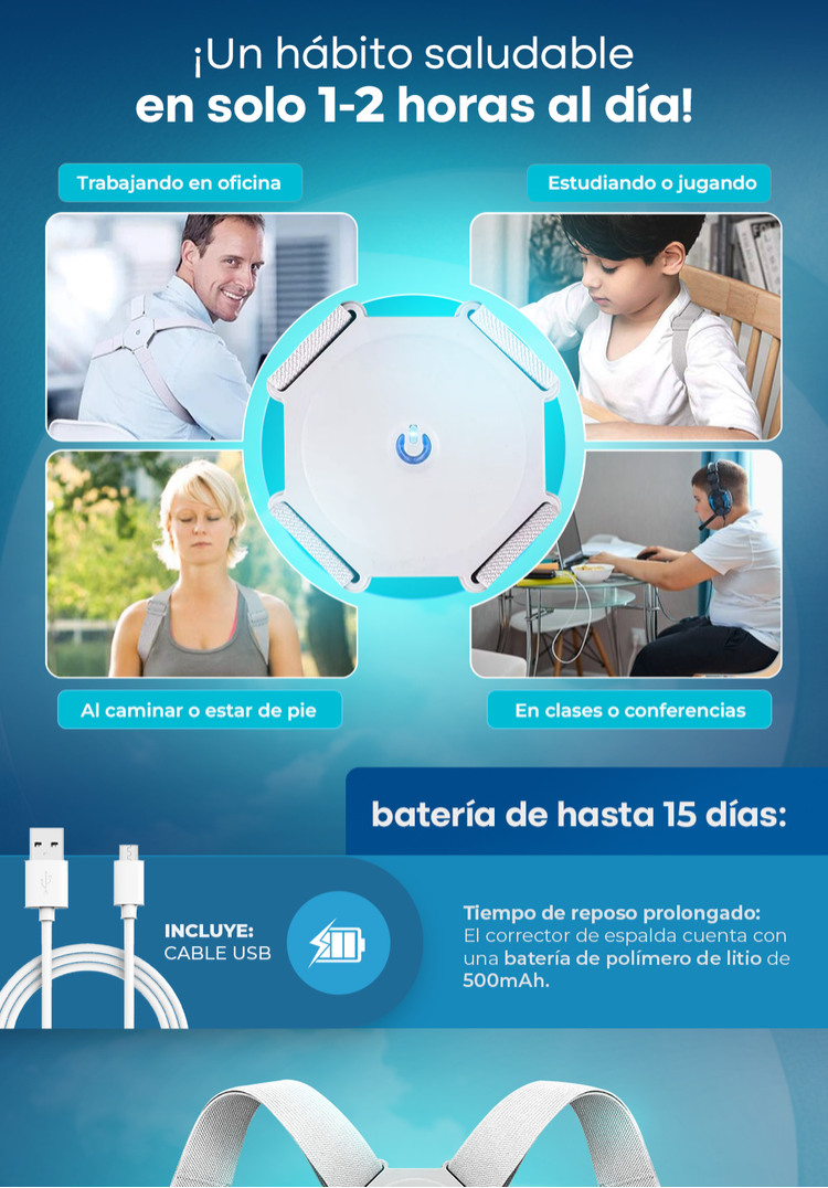 ✨ Mejora tu postura al instante con este Rectificador Inteligente de Espalda, diseñado para ayudarte a mantener una alineación correcta durante el día 🧍♂️✔️. Su sensor vibra suavemente cuando te encorvas, promoviendo un hábito natural de autocorrección 🔔. 💨. Ideal para reducir dolores de espalda y hombros, brindándote más bienestar y confianza cada día 💆♂️💪. ¡Un apoyo discreto, ligero y fácil de usar para cuidar tu postura siempre! 🎯